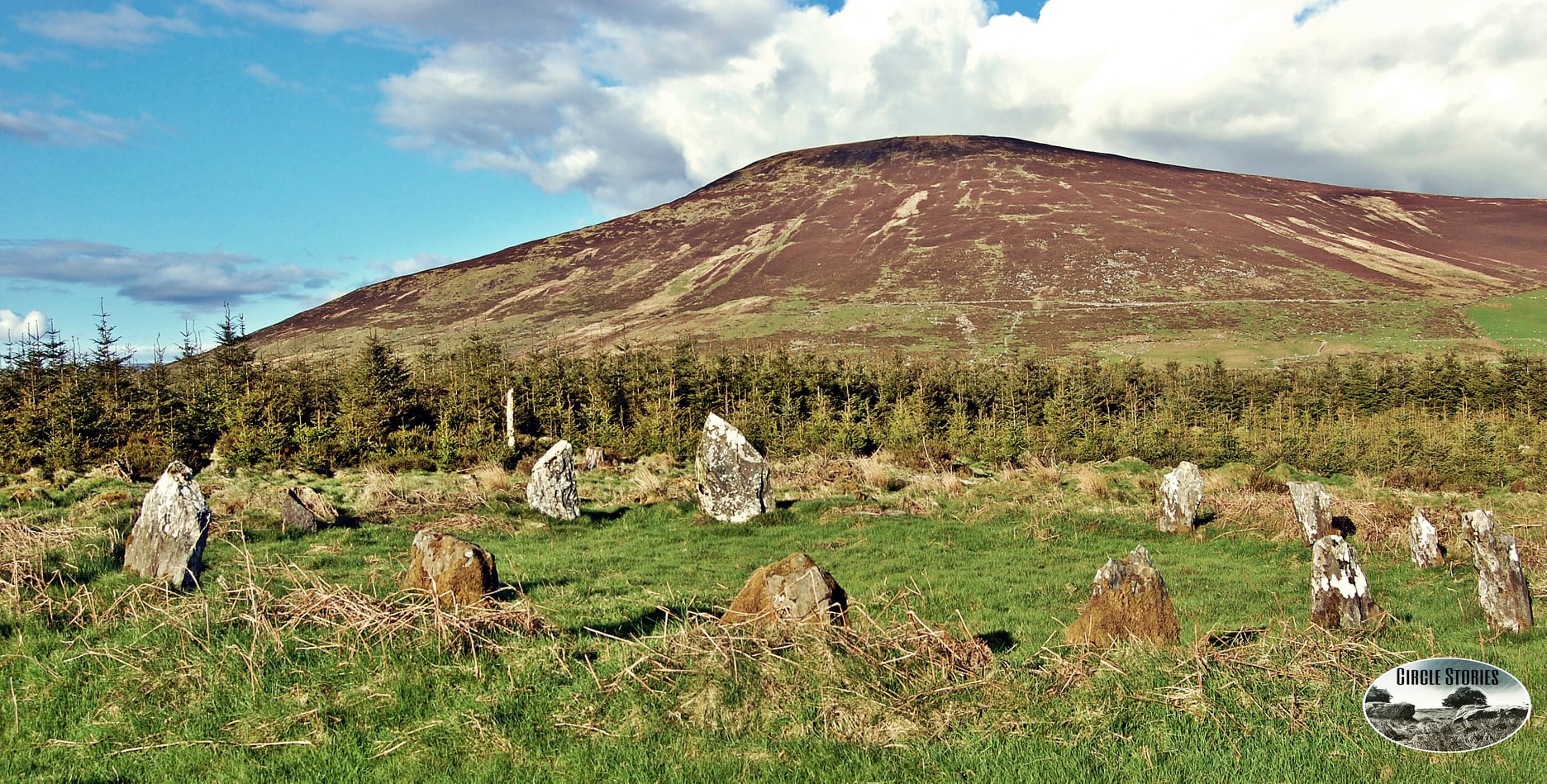 I’ve chosen photos of Boleycarrigeen and Castleruddery stone circles with Keadeen Mountain in the background.